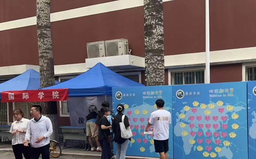 新生报到的地点设置在教学楼b的102教室和操场旁边的tyc122cc太阳成集团服务台,每个班的两名班助负责确认新生报道情况和信息的录入,同时发放公司为每个小萌新准备的礼包,里面包括员工手册、入学指南、员工常见事务问答、公司新生教育和军训安排表等等。整体迎新工作行云流水,有条不紊,新生们还纷纷打卡精心布置的迎新签名墙、留下自己的名字,记录步入大学时刻。