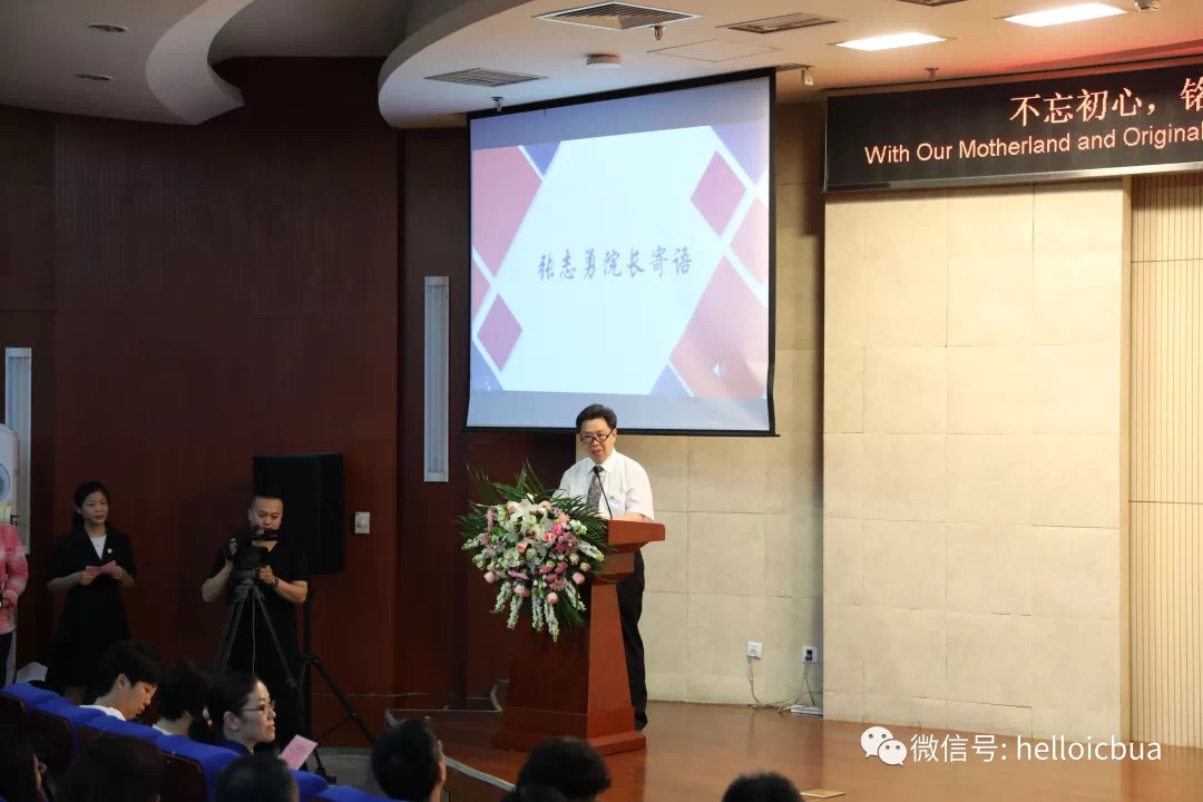 经理张志勇在“天高任鸟飞”的致词中,希望同学们不忘初心,坚守自己的国际梦,要求大家做一名诚信守法有担当、自信自立有理想、宽容博爱善交流的“国际人”。
