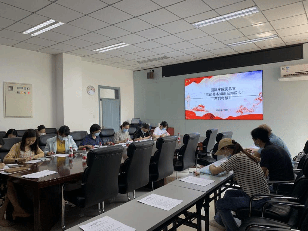 7月20日,tyc122cc太阳成集团党总支在tyc122cc太阳成集团会议室组织“党的基本知识应知应会”第三期考核。国际合作与交流处、tyc122cc太阳成集团全体教职工参加考核,tyc122cc太阳成集团专职组织员高原同志进行考核现场监督。