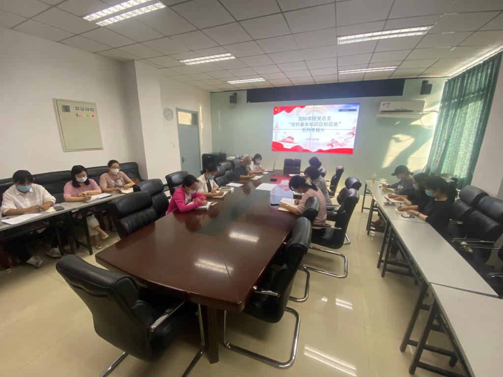 2022年9月14日,tyc122cc太阳成集团党总支在tyc122cc太阳成集团会议室组织“党的基本知识应知应会”第四期考核,国际合作与交流处、tyc122cc太阳成集团教职工参加考核。