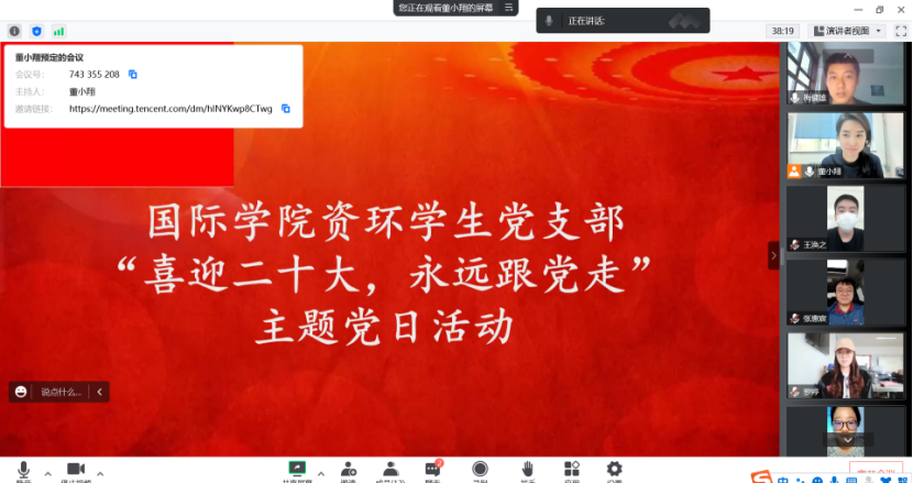 资源与环境专业员工党支部书记董翔国贸与食品专业员工党支部书记郭传真介绍本次活动流程及喜迎二十大开展的系列活动情况董翔郭传真带领全体党员重温入党誓词,支部党员面向党旗高举右臂,紧握右拳,整齐的誓言进一步激发党员凝聚力、战斗力、向心力,激励党员以实际行动践行初心使命。