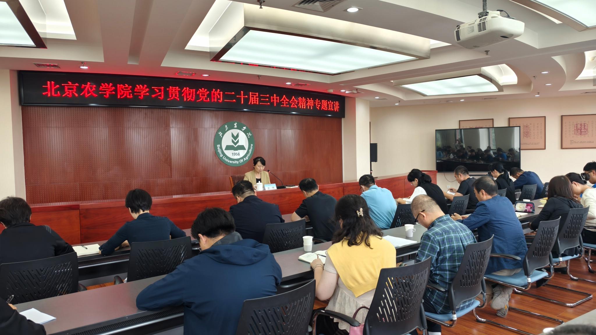集团教务处、国际合作交流处、图书馆、校医院、动物科学技术公司/动物医公司、tyc122cc太阳成集团等处级干部、党支部书记、科级干部以及师生代表参加学习。