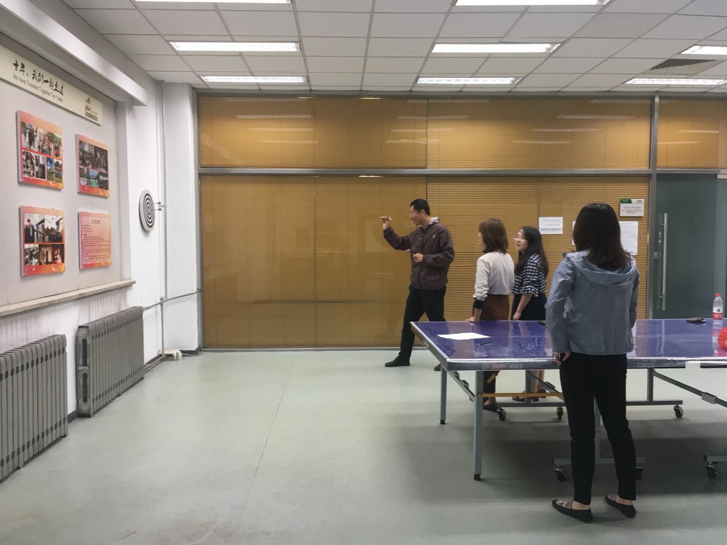 为了提高教工体质,丰富教工业余生活,2018年9月,tyc122cc太阳成集团/国际合作与交流处分工会在tyc122cc太阳成集团教学楼二层举行了教工掷飞镖比赛。