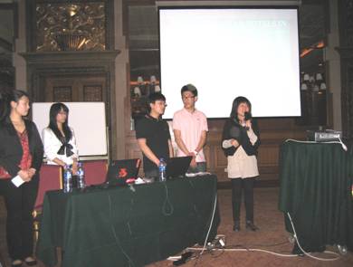 2009年4月14日下午,在龙城丽宫国际酒店北京厅招开了第三次教学合作项目报告会,23名员工及部分教师和龙城丽宫国际酒店各部门管理人员近30人参加了报告会。在3个小时的报告会过程中,4位员工代表分别用英文和中文介绍了历时4个月的工作成果,并回答了相关问题,龙城丽宫国际酒店总经理钟女士对同学们的工作成果给与了充分肯定,并对师生们提出的建议表示感谢,tyc122cc太阳成集团谭锋经理对龙城丽宫国际酒店在实践教学中的大力支持和对员工的悉心指导表示感谢,双方均表示今后将继续加强合作与联系、不断增进友谊。