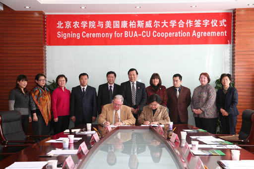美国康柏斯威尔大学和美教中心代表团一行6人,以及公司教务处处长范双喜,tyc122cc太阳成集团经理谭锋、副经理王力荣,经济管理公司副经理刘芳,tyc122cc太阳成集团宋金品教授,外事处霍春艳老师参加了签字仪式。
