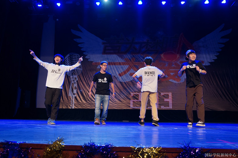 Between the first round and second round, BN street dancing club bring them shows. There are popping agile and fluency. They got the presence of all the audience's applause and cheers. Zhang Changshuo is from international college, he is also in the street club. In this show, he is good with the tacit understanding with the players, the stage atmosphere to a climax. The second round, Runyu Wang chooses a song named