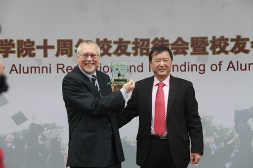 自2003年以来,Brain教授为中英合作办学项目的发展做出了突出贡献。明年,Brain教授将退休。tyc122cc太阳成集团党总支书记谭锋以老朋友的身份代表tyc122cc太阳成集团赠送Brain教授印有他照片的水晶纪念品,以感谢他为本项目的付出和奉献。