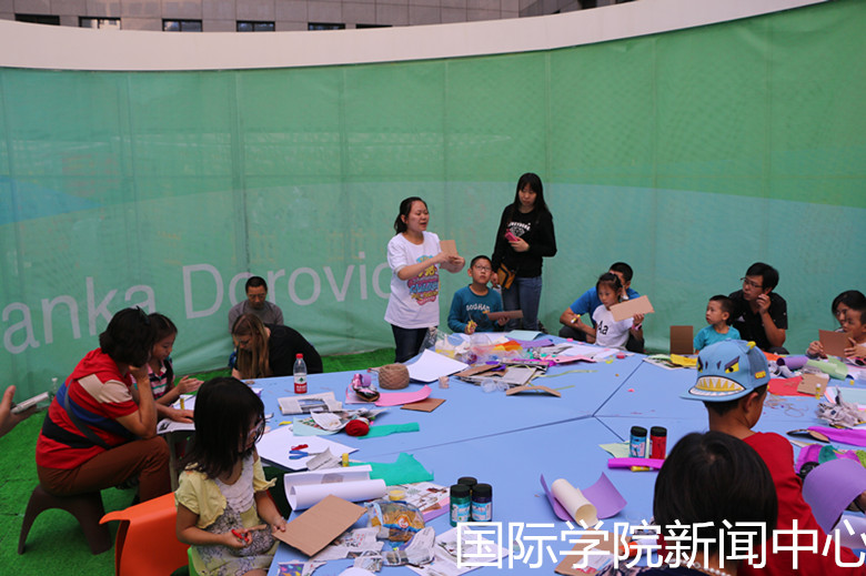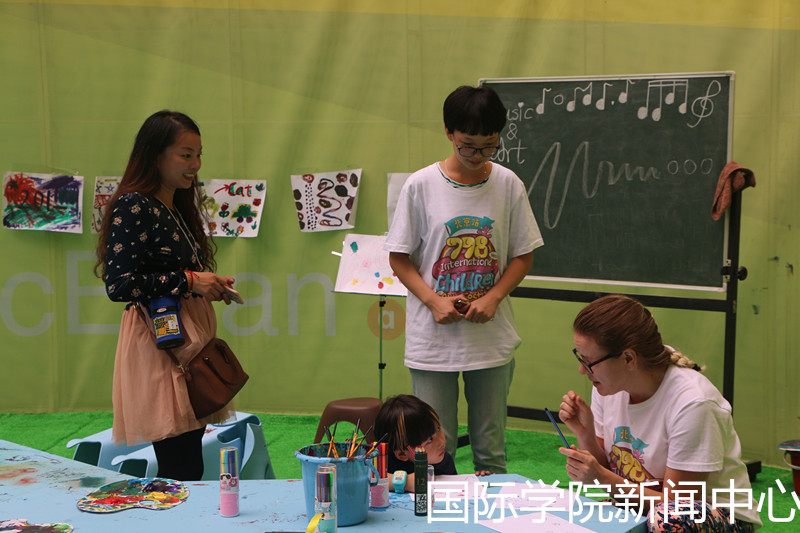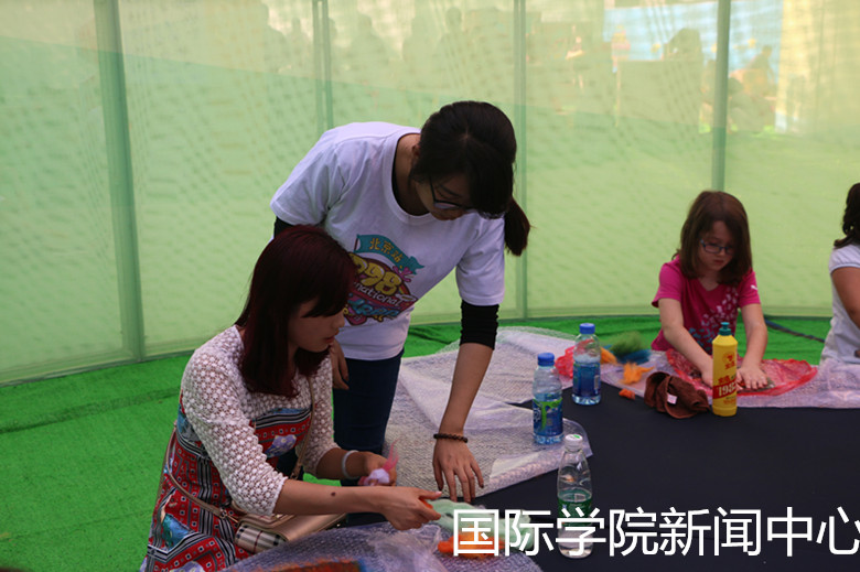 tyc122cc太阳成集团志愿者们的身影在798随处可见。检票的同学热情大方,耐心给客人讲解;收拾工作坊的同学即使被五彩缤纷的涂料沾成了一道“”靓丽的风景线也依然任劳任怨;做翻译的志愿者们充分展现了tyc122cc太阳成集团同学英语特长的优势,无论与国外艺术家,还是与家长、小朋友们的沟通都亲切而熟练,得到了所有人的一致好评。分配在不同工作坊的志愿者们都被各国的文化所深深吸引,也学习到了不少外国特色艺术文化。尽管每天都会很辛苦但志愿者们乐在其中。