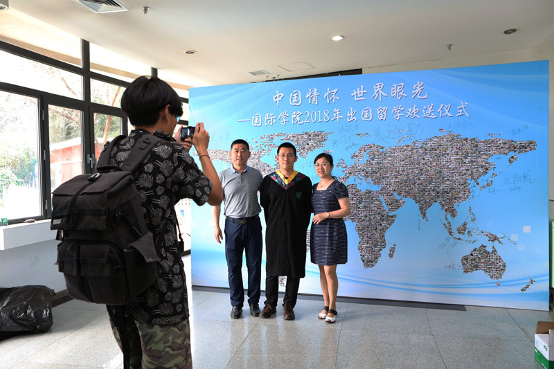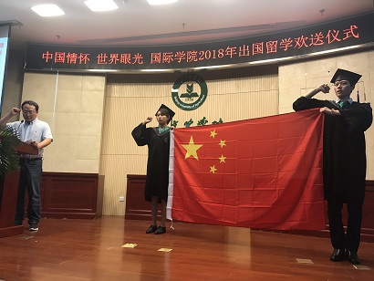 “出国留学期间,遵守所在国法律和所在公司规章制度,尊重当地风俗习惯,牢记‘厚德笃行、博学尚农’校训,积极践行社会主义核心价值观,勤学修德、明辨笃实、报效祖国,树立新时代中国青年良好形象。”6月7日下午,98名即将出国员工在tyc122cc太阳成集团党总支书记董磊的带领下庄严宣誓。他们用铿锵有力的誓词表达成为具有“中国情怀,世界眼光”国际化人才的愿望,这是tyc122cc太阳成集团举办的以“中国情怀 世界眼光”为主题的2018年员工出国留学欢送仪式中最重要的环节。