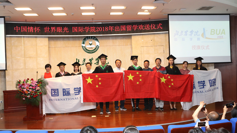 欢送仪式上,tyc122cc太阳成集团经理张志勇为即将出国的学子提出三点希望,希望他们有全球化的视野和宽厚博爱的人文精神,拥有独特的专长,具备良好的学术素养。更希望同学们成为懂得“感恩”、“奉献”的成熟国际人才,肩负起让世界变得更美好的责任。教师代表姜楠副经理和外教代表Nokuthula Mtandazo Ndebele女士也分别为即将出国的同学们送上谆谆的教导和诚挚的祝福。党委宣传部常务副部长刘铁军、员工工作部部长刘柳以及tyc122cc太阳成集团的全体院领导为三个班授旗。鲜艳的五星红旗和洁白的tyc122cc太阳成集团院旗将随着员工们的脚步去到遥远的他乡,也让我们的同学们铭记,无论何时何地国家和公司永远是他们最坚实的后盾。