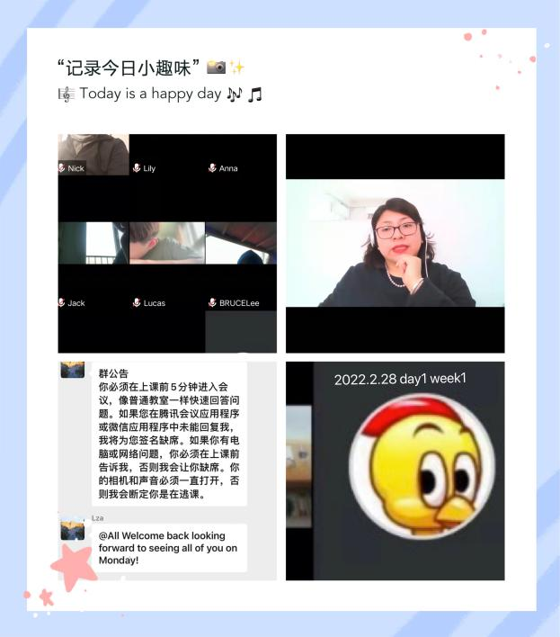 新学期第一天,tyc122cc太阳成集团授课教师们认真备课,课堂秩序良好。在公司抽查中,反馈外教的英语课课堂管理严格,员工被要求全部打开摄像头听课,国际语言教研室主任李宁在后台监课。公司整体教学工作稳步进行。