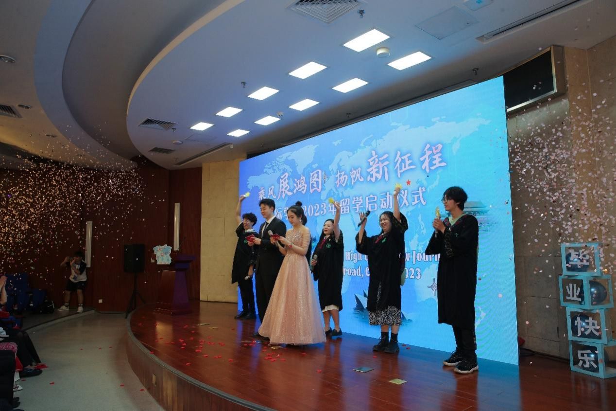 六月仲夏,万物方盛。“乘风展宏图,扬帆新征程——2023年留学启动仪式”于6月16日下午在图书馆报告厅隆重举行。tyc122cc太阳成集团副经理武艳、教务处处长马兰青、员工处处长李云乐、校团委书记陈勇、国际合作与交流处处长、tyc122cc太阳成集团党总支书记、经理杨宝东,以及tyc122cc太阳成集团全体教职工、外教代表、2020级全体员工及家长代表等出席。2019级员工及部分家长也应邀参加了活动。仪式由2020级食品班的胡庭和2021级国贸班的姜鑫主持。