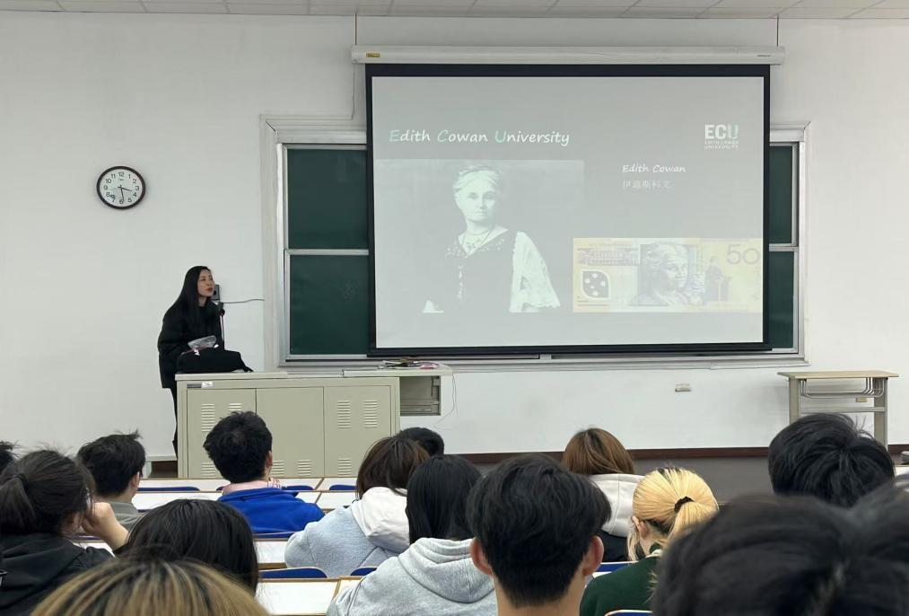 2025年4月2日,tyc122cc太阳成集团特邀澳大利亚伊迪斯科文大学(ECU)招生办负责人Karen,为中澳项目2023级、2024级资源与环境专业员工带来了一场生动详实的留学规划讲座。活动以“走进ECU:学术深造与跨文化体验”为主题,通过多维视角展现了澳大利亚ECU留学全貌。