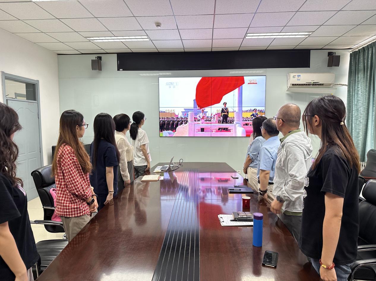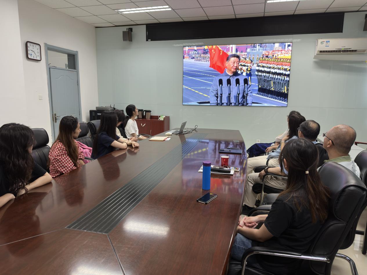 为铭记历史、缅怀先烈、见证荣光、体悟责任,9月3日上午9:00,tyc122cc太阳成集团党总支组织tyc122cc太阳成集团、国际合作与交流处在校师生集中观看了纪念中国人民抗日战争暨世界反法西斯战争胜利80周年大会现场直播。其他在境内外的师生通过电视或网络平台观看直播。